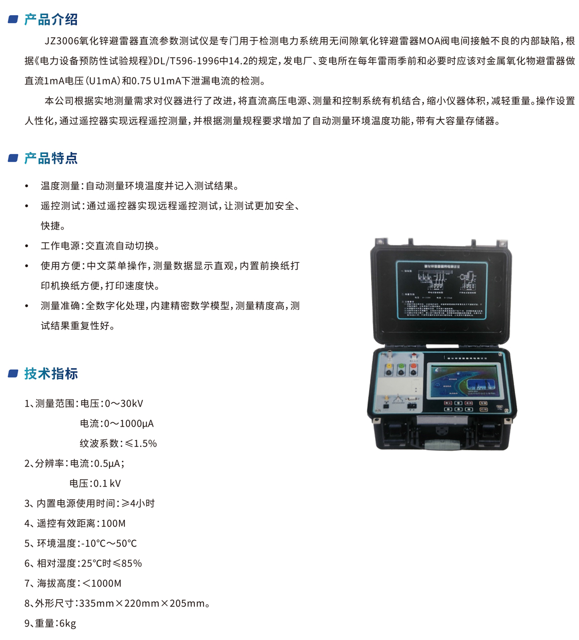 JZ3006 氧化鋅避雷器直流參數測試儀